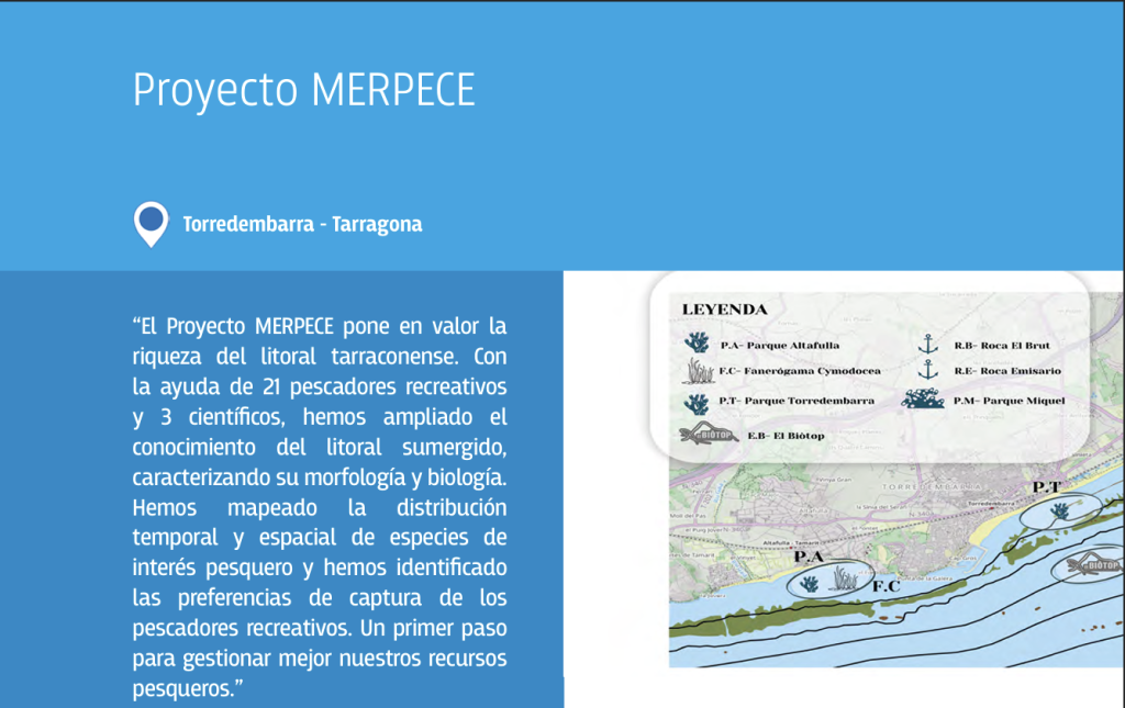 El proyecto MERPECE ha sido reconocido en el Catálogo de Buenas Prácticas en Desarrollo Local Participativo (DLP) del FEMPA 2025, una recopilación impulsada por la Red Española de Grupos de Pesca (REGP) que selecciona iniciativas ejemplares financiadas por el Fondo Europeo Marítimo, de Pesca y de Acuicultura (FEMPA).