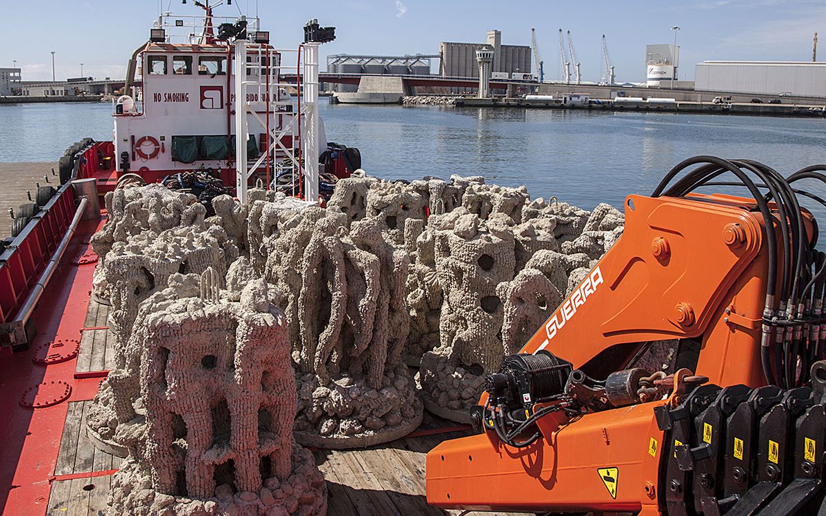 - El muerto (bloque de cemento, con función de peso), estructura sin valor ambiental, se sustituye por una estructura ecológica, el biotopo, en el que el mar es capaz de desarrollar un hábitat.