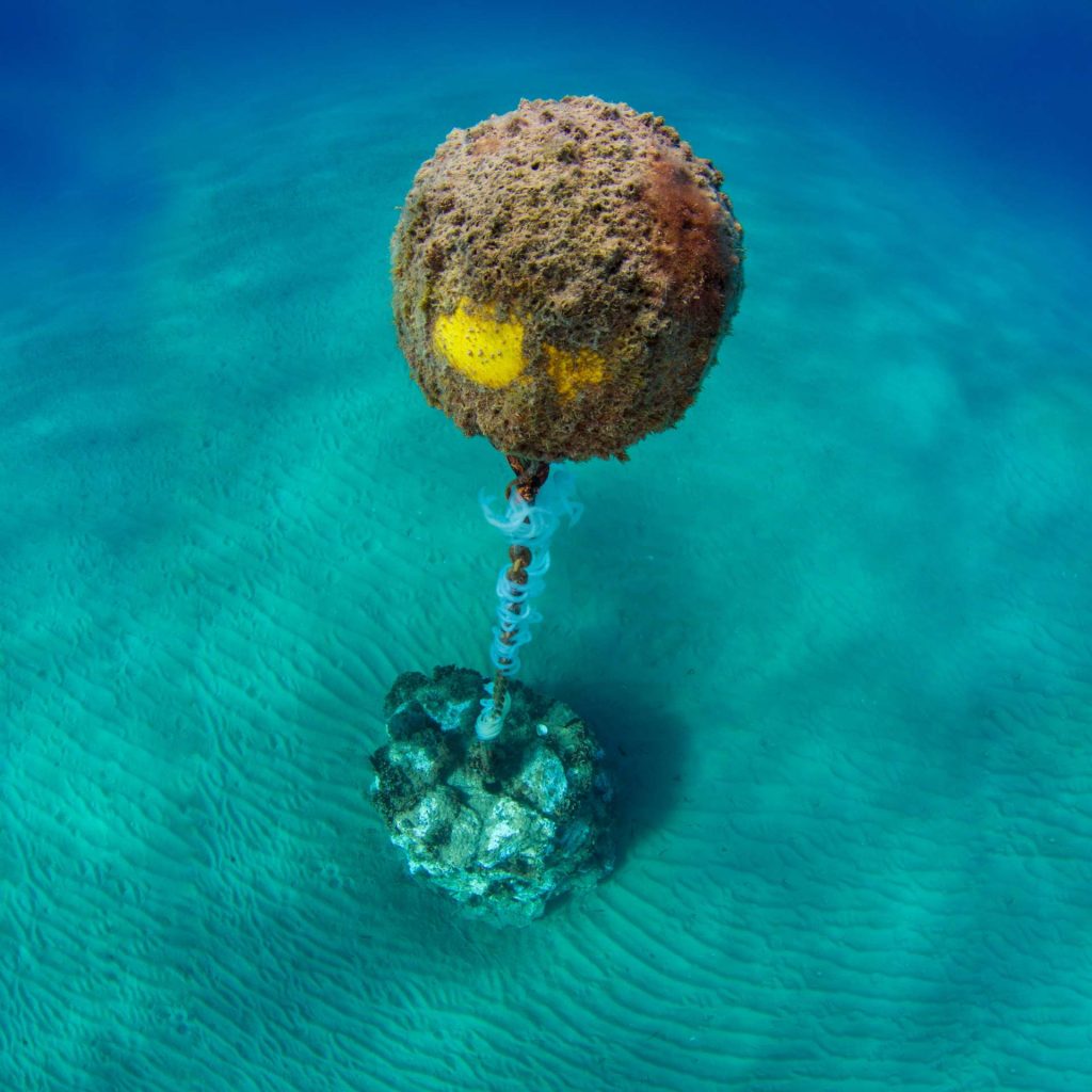 - Las cadenas. Se coloca una boya intermedia, que mantiene vertical la cadena conectada al biotopo y de esta manera se evita la fricción con el fondo.